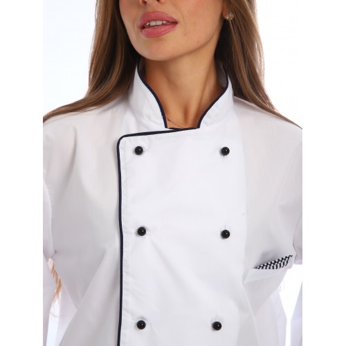 качестве униформы сотрудников общепита. Поварской китель с воротником- стойкой